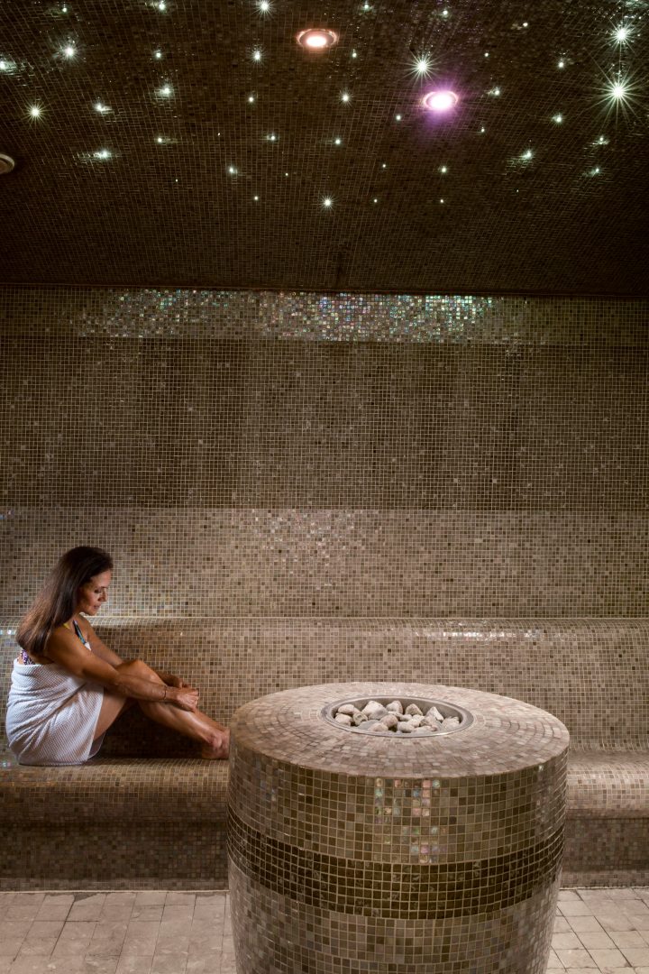 Then you go into the most amazing steam room I’ve ever been in. It’s totally dark and there’s twinkling lights in the ceiling that change colors it’s so awesome and relaxing to watch. The steam is wintergreen scented to refresh your senses.